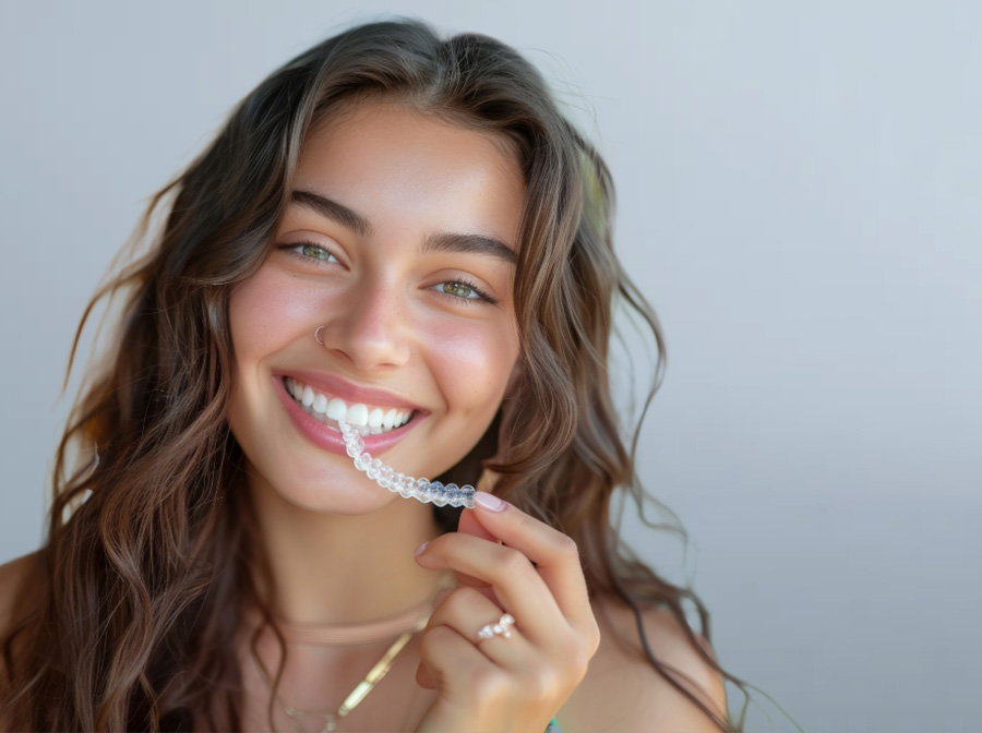 Invisalign® folosește gutiere transparente, personalizate, pentru a îndrepta dinții fără bracketuri. Sunt discrete, detașabile și permit menținerea igienei orale fără restricții.